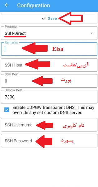 - ابتدا مطمئن شوید که پروتکل برروی SSH-Direct قرار دارد
