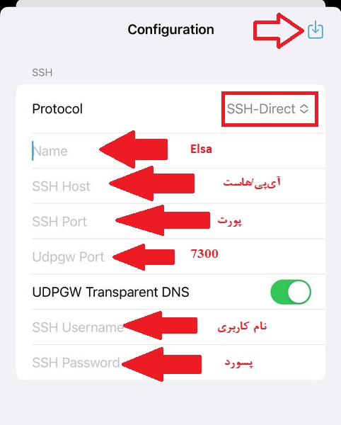 - ابتدا مطمئن شوید که پروتکل برروی SSH-Direct قرار دارد