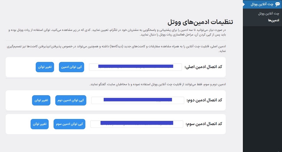 با استفاده از پلاگین و ربات ووتل، دیگر نیازی به استفاده از هیچ برنامه جانبی نبوده و پشتیبانی سایت به سادگی میتواند از طریق پنل وردپرس و یا تلگرام، پاسخ مخاطبان وبسایت را داده و یک سیستم پشتیبانی 24 ساعته را پیادهسازی نماید. پلاگین به شما اجازهی فعال کردن سه پشتیبان را داده که هر سه نفر میتوانند در زمان دلخواه، با کاربران وبسایت چت نموده و به سوالات ایشان پاسخ دهند.