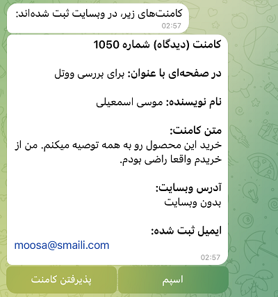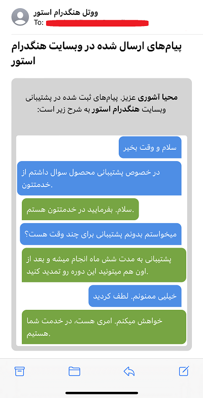 ووتل، سابقهی پیامها را برای مخاطب، ایمیل خواهد کرد. بنابراین، حتی در صورتیکه کاربر وبسایت را ترک کرده باشد، پاسخهای شما به دست ایشان خواهد رسید.